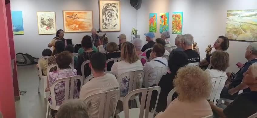 היום בגלריה קונצרט של שבת . אולם הגלריה היה מלא מפה לפה המוסיקאים אורי ואורלי נתנאל הפליאו בנגינתם . הקהל נהנה מתערוכה מיוחדת של אמניות אגודת WAG ולסיום שירה של שרה רז יו"ר העמותה ואוצרת התערוכה.וגמא